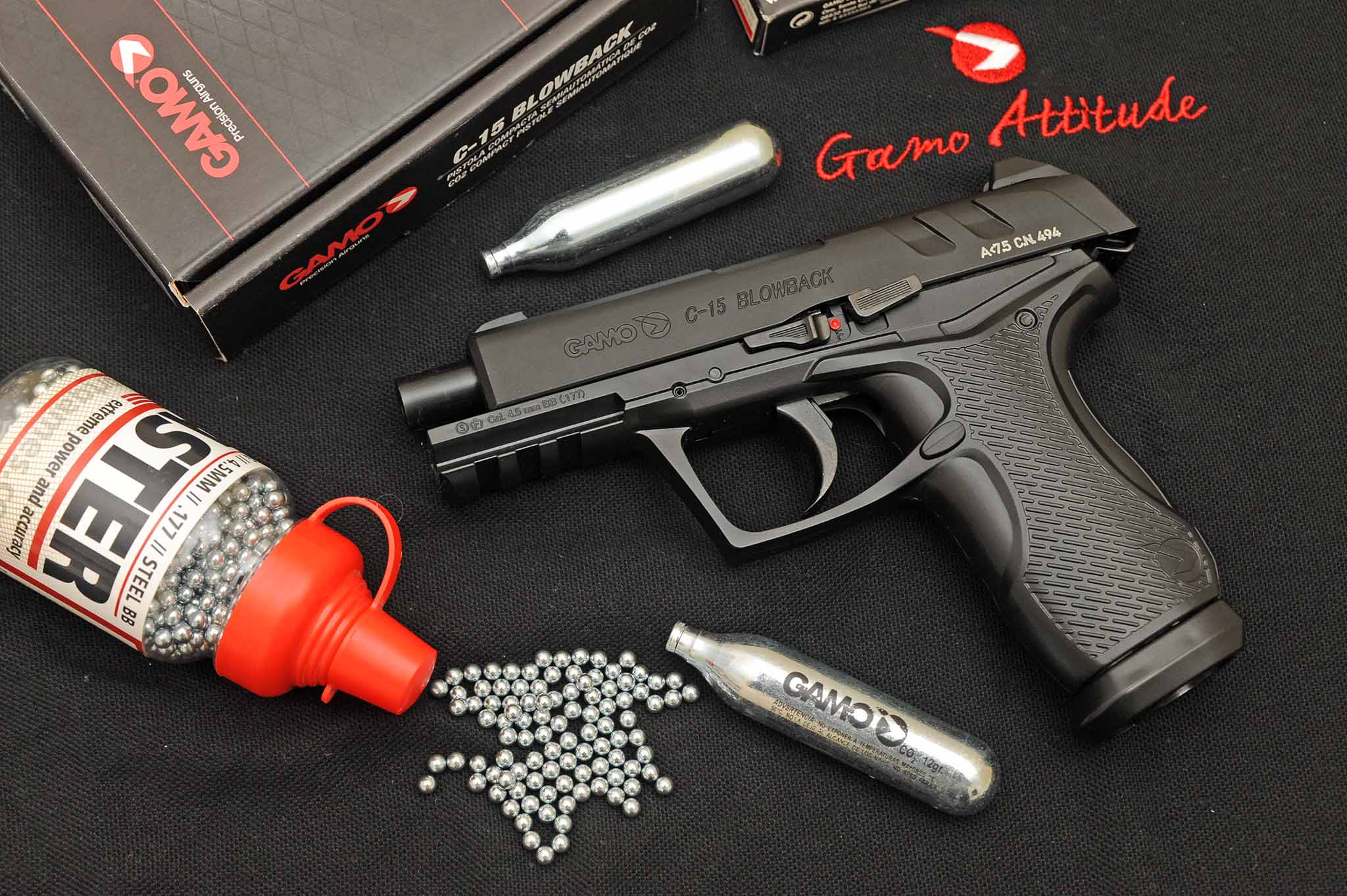La Gamo C-15 Blowback è una pistola semiautomatica di libera vendita destinata al tiro ricreativo. Spara pallini sferici in acciaio e offre un realistico effetto “scarrellante” che ne rende l'utilizzo molto divertente. Negli ultimi anni la Casa Spagnola ha espanso notevolmente la sua linea di pistole ad aria compressa, muovendosi in direzioni diverse alla ricerca di prodotti originali. La C-15 e tutti i modelli della serie “Blowback” ad esempio sono costruiti in Giappone, e risentono in una certa misura dell'esperienza maturata dai nipponici nella produzione di repliche Softair.