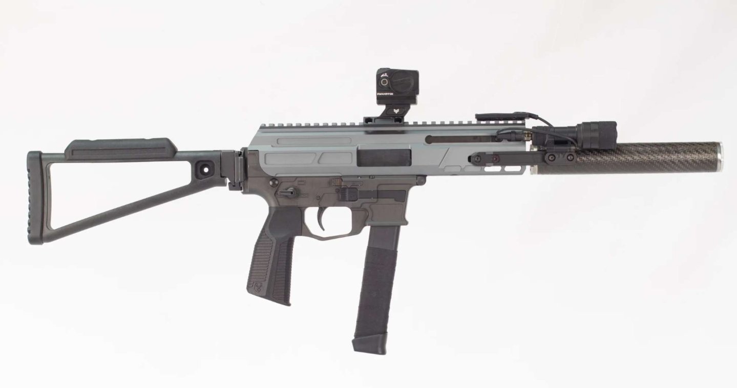 L’otturatore del MAT9 ha un sistema di hold open, quindi rimane aperto una volta sparato l’ultimo colpo del caricatore. Il gruppo di scatto ha caratteristiche Mil-Spec ed è stato accuratizzato per garantire uno sgancio pulito e sicuro. La canna della Matador MAT9 è disponibile in due misure: 5,5 pollici (corrispondenti a 140 millimetri) oppure 8 pollici (203 millimetri) con volata filettata per facilitare il montaggio del silenziatore (dove consentito) o di un freno di bocca. L’astina guardamano è di tipo ERS (Extended Rail System) con slitta Picatinny su tutta la lunghezza a ore 12 e interfaccia M-Lok sui lati. La MAT9 viene commercializzata senza organi di mira e sarà l’utente a decidere se montare sulla slitta un set di mire meccaniche o un punto rosso. L’impugnatura a pistola dal design proprietario è quasi verticale e ha una svasatura a coda di castoro pronunciata, che permette un saldo brandeggio. Tra le opzioni più curiose della MAT9 c’è quella di ordinare la propria arma con upper, lower e astina di due colori diversi (tra nero, grigio e FDE).
