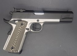 L'impugnatura presenta un alloggiamento della molla (mainspring housing) a profilo diritto in acciaio inossidabile con zigrinatura a 20 LPI e sottosquadro del grilletto. Le guancette sono in G10 Target con un motivo ottico piuttosto evidente creato dall’alternanza di strati di diverso colore. L’elsa posteriore a coda di castoro è estesa. Il grilletto e il cane sono alleggeriti. La tacca di mira, prodotta dall’italiana LPA è di tipo Bomar Small Blade completamente regolabile in altezza e deriva, ed è abbinata a un mirino brunito e zigrinato contro i riflessi. I caricatori sono dotati di una base in plastica nera. La finestra di espulsione è svasata e abbassata, per ridurre il rischio di inceppamento. La sicura a leva sul fusto è maggiorata e ambidestra.