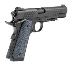 Vediamo cosa hanno in comune tutti questi modelli. Nel complesso, il design è fermamente ispirato alle linee e alla meccanica delle 1911 più classiche (il che significa che si tratta di una pistola con scatto in singola azione), ma il fusto e il carrello sono in acciaio inossidabile forgiato, con quest’ultimo dotato di zigrinature di presa posteriori e anteriori. La canna da 5 pollici (127 millimetri) con corona della voltata di tipo Target a 11° è ricavata dal pieno in acciaio inox, mentre il controcane e il disconnettore sono ricavati da acciaio per utensili. Il cane è in acciaio inossidabile. Il percussore in titanio è rivestito con una finitura nitrurata.