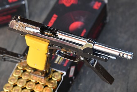 Sono presenti sei cartucce, anche queste tornite in ottone. Ma partiamo dal caricatore, realizzato come uno vero, perfetto, funziona e ha una capienza di 7 cartucce. E poi la miniatura, anche questa realizzata in metallo pressofuso ma di qualità elevatissima, ogni parte si accoppia quasi a rifiuto d’olio, le finiture sono eccelse, peccato sia cromata; ottime le scritte, e le parti scorrono e funzionano nei più minimi dettagli come nell’originale. Come nella 93R la miniatura scarrella, camera ed espelle, scatto e sicure funzionano, e rimane aperta espulso l’ultimo colpo. Quello che sorprende è che è davvero una 1911 in miniatura; la chiusura funziona!!!! Si parte dalla leva di hold open, rimuovendola - e attenzione al pistoncino e molla della sicura... La bielletta c’è e abbassa la canna per svincolarla dal carrello, ogni minima parte è identica all’originale, per lo smontaggio si ruota il bushing premendo il tappo della molla di recupero e si estrae la canna da davanti ripiegando la bielletta… lo scatto è come nell’originale e ho passato un intero pomeriggio a meravigliarmi di ogni dettaglio. Una replica in scala 1:2 davvero eccellente, divertente e davvero “collectible” come dovrebbe essere ciascuno di questi oggetti.