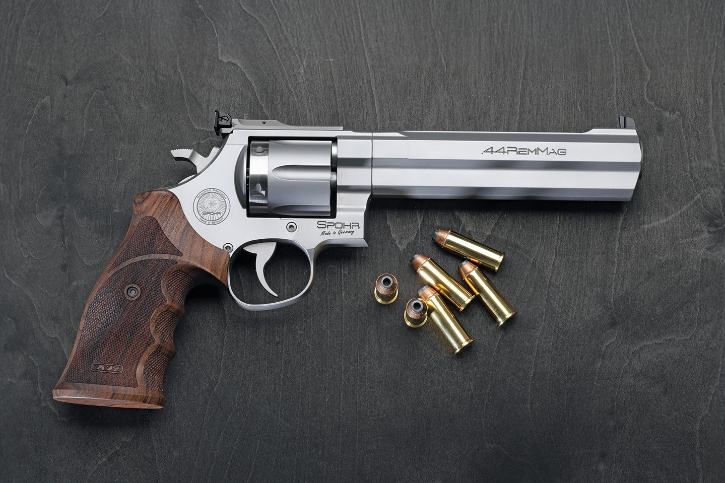 Spohr è un produttore tedesco di revolver di alta precisione, noto per la sua meticolosa artigianalità e l'attenzione ai dettagli. Con il nuovo modello N670, Spohr offre un revolver in calibro .44 Magnum appositamente progettato per soddisfare le esigenze degli utenti del tiro sportivo, ma che offre anche un campo di applicazione universale grazie alle diverse lunghezze di canna disponibili. Il revolver è un'estensione delle linee già disponibili presso il produttore e il suo design si basa sull'esperienza che Spohr ha acquisito con i suoi affermati modelli in .357 Magnum. Invece di integrare semplicemente un cilindro più grande in un telaio esistente, il produttore tedesco ha optato per una riprogettazione totale, al fine di soddisfare i requisiti specifici di questa potente ed enorme cartuccia.
