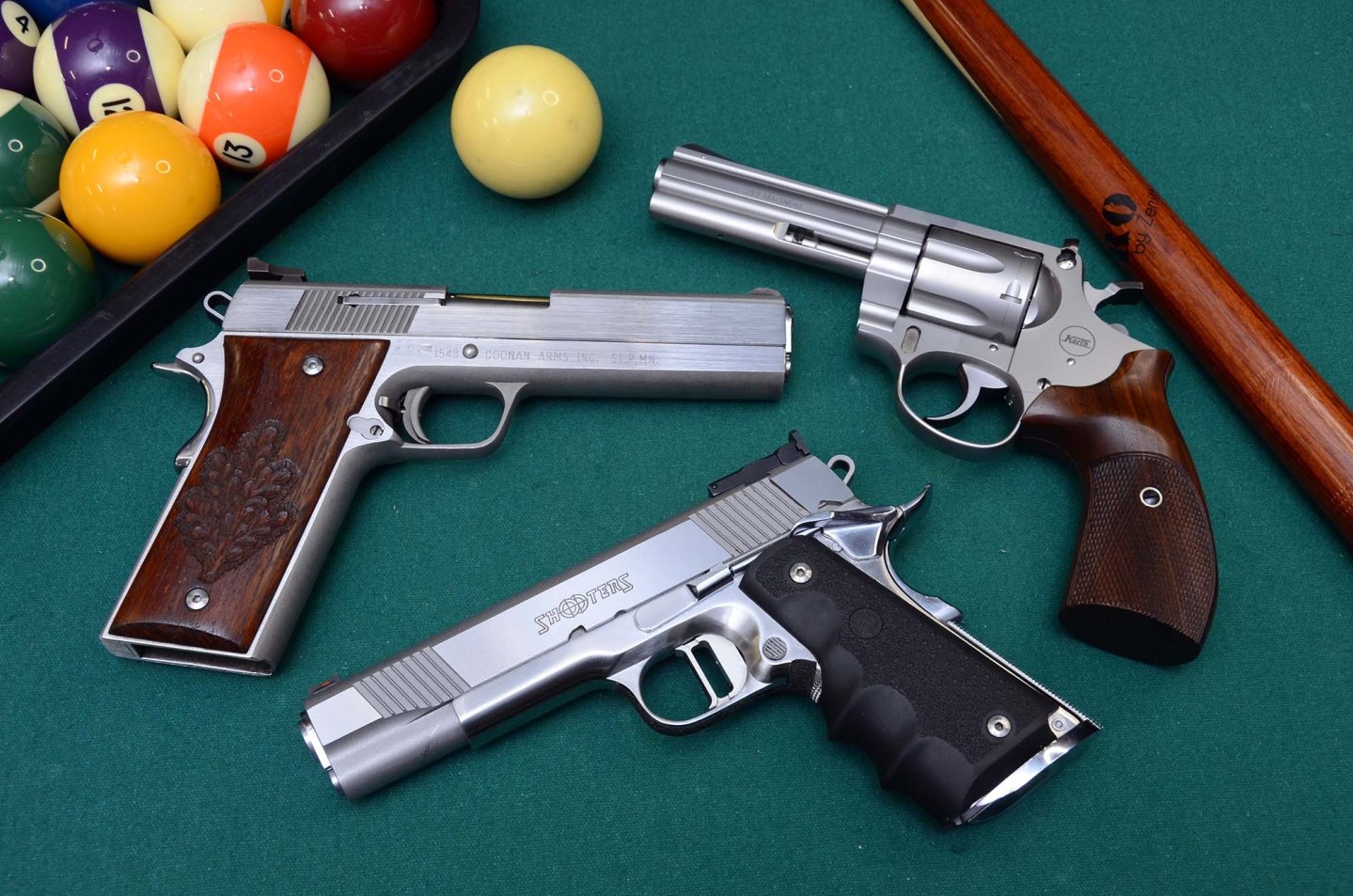 Nonostante questo, la gente continua a comprarli, apprezzandone la precisione certa, l’altissima affidabilità per impieghi civili, la semplicità e sicurezza d’uso attiva e passiva, ma soprattutto una ergonomia che perdona molti errori. E comunque provate andare a caccia con un grosso revolver (in Italia è vietato) e poi con una Desert Eagle: di sicuro preferirete il revolver, così come potrete portarvi agevolmente un piccolo revolver .357 in tasca o nella fondina di servizio ma non di certo una semiautomatica di pari calibro. Però un revolver con canna da 4” (101 mm) ha dimensioni sovrapponibili ad una 1911 con canna da 5” (127 mm). Anche le prestazioni sono praticamente sovrapponibili perché a causa della lunghezza della camera di cartuccia, di fatto la Coonan ha un tratto rigato di soli 90 mm, quindi in pratica sfrutta la carica di lancio per un tratto ben più breve. Mentre se avesse un tratto di rigatura di 104 mm come col revolver svilupperebbe una velocità molto ben superiore perché i revolver hanno uno spazio vuoto tra canna e tamburo che causa una perdita di pressione e quindi di velocità di spinta del proiettile. Quindi prestazioni simili, se non addirittura superiori nella semiautomatica ma in genere non superiori al 5%, pertanto poco o nulla influente sulle prestazioni finali.