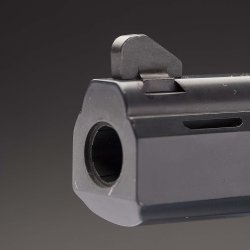 Tornando al nostro revolver, le 5 rigature della canna di tradizione Smith & Wesson garantiscono un'ottimale stabilizzazione del proiettile, aiutate in questo dai due fori di compensazione tipo Mag-Na-Port. Il sistema, prodotto dall'omonima azienda in Michigan, si basa sull'azione di due deflettori trapezoidali, inclinati di circa 40°, posti a un centimetro dalla volata. La loro azione è in grado di ridurre la percezione di rinculo di un valore compreso tra il 15 e il 20%.