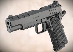Le guancette della Emissary sono quelle della serie thin line (ovvero sottile) dello specialista americano VZ grips. Costruite in G10 hanno una zigrinatura a risalti quadrati molto originale dal punto di vista estetico ma anche efficace nel rendere la pistola ben grippabile. La trama delle guancette riprende quella della parte anteriore dell’impugnatura. Sul dorsale dell’impugnatura troviamo una leva della sicura automatica di tipo Wilson; quindi, dotata di un risalto che ne facilita l’inserimento. Sulla parte anteriore del fusto (dust cover) c’è anche la ormai consueta slitta Picatinny che permette il montaggio di una luce tattica o di un puntatore Laser.