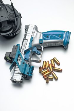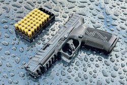 - Questo vale anche per il pulsante di sgancio del caricatore allargato ed esteso. Per inciso, la pistola è già da tempo inserita nella lista IPSC Production (Optics), purchè senza minigonna per il caricatore e appoggio per il pollice. Essendo una pistola interamente in acciaio con peso e corsa del grilletto costanti, potrebbe essere un'alternativa per i tiratori che hanno difficoltà con le combinazioni di grilletti DA/SA, altrimenti predominanti. Non c'è dubbio che i migliori risultati si possono ottenere con il classico sistema ad azione mista (doppia per il primo colpo, tutti i colpi successivi in singola azione), ma anche questo richiede un certo allenamento. I caricatori in lamiera d'acciaio contengono 18 cartucce e si agganciano facilmente e in modo affidabile, anche quando sono riempiti alla massima capacità. Le tolleranze tra l'impugnatura e il carrello sono piacevolmente basse e anche la canna scanalata si inserisce nel carrello senza alcun gioco evidente.