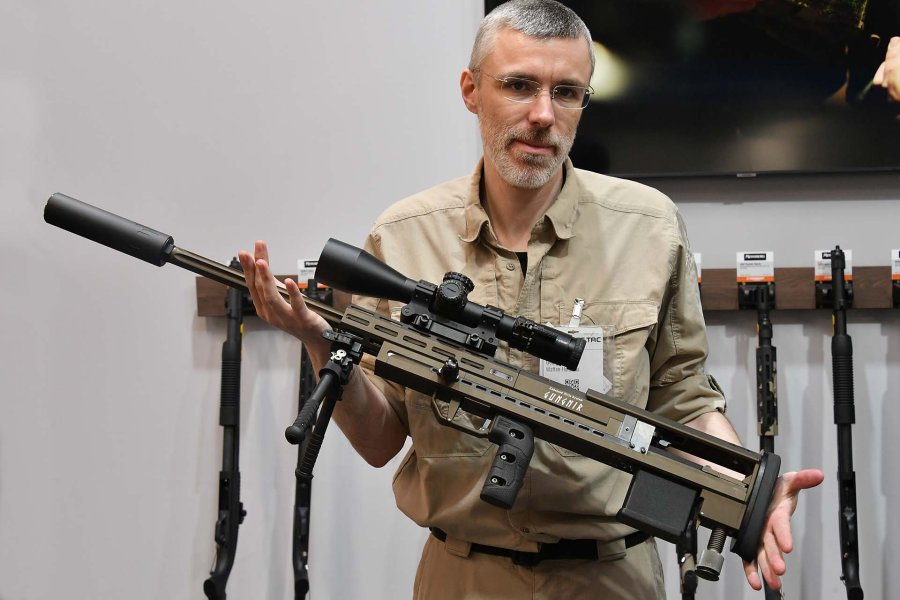 Tra le armi da fuoco, a dire il vero non moltissime, presentate a Enforce TAC questa ha attirato la nostra attenzione. Per il momento si tratta di un prototipo, e ci è stato mostrato nei dettagli dal suo progettista, il tedesco Georg Holthaus. Prodotta in Germania dalla Praezisiontechnick si chiama Gungnir - come la lancia del dio Odino - ed è una carabina multi calibro di tipo bull-pup, con ripetizione a corsa rettilinea, con un otturatore cortissimo dotato di testina ruotante che si impegna in una appendice della culatta. Grazie alla possibilità di allungare o accorciare la parte di chassis che ospita il caricatore prismatico, la carabina Gungnir può essere convertita in ogni calibro dal .223 Remington al .50 BMG. Lo chassis adattativo della carabina è coperto da brevetto, così come i tenoni di chiusura e altri dettagli che per il momento non possiamo rivelare. La corsa dell’otturatore è cortissima e consente una ripetizione del colpo fulminea, mentre il particolare profilo dei tenoni fa sì che al momento dello sparo questi tendano a bloccarsi ulteriormente all’interno della culatta invece di tendere a uscirne. Questo rende l’arma estremamente sicura anche sparando con cartucce ad altissima intensità. L’ergonomia della Gungnir è basata sulla completa reversibilità. Non scendiamo ulteriormente nei dettagli perchè prossimamente pubblicheremo un’articolo specifico su questa carabina davvero interessantissima.