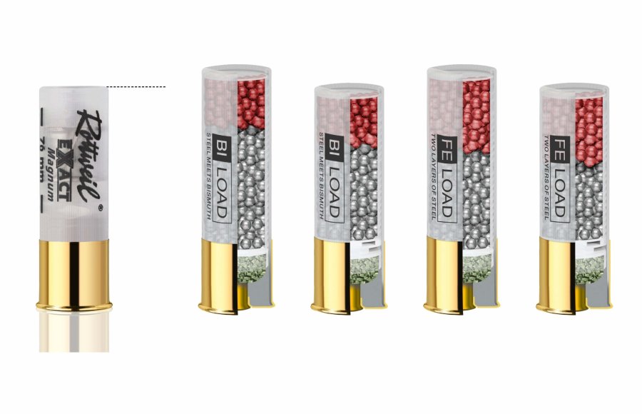Абсолютно новые и доступные уже в июне 2020 дробовые патроны BI-Load выпускаются в версиях 12/70 и 12/76. В этом случае, аббревиатура BI означает, что они также снаряжены дробью двух размеров, но из двух разных материалов. Вариант 12/70: 8 г подкрашенной красным дроби 3,8 мм (#2) из висмута и 28 г луженой железной дроби 3,5 мм (#3), расположенных одна за другой. Более тяжелый висмут призван передать больше энергии, в то время, как более легкая луженая стальная дробь, за счёт большего количества, обеспечивает широту дробового снопа. Благодаря этому вы получаете доступный по цене боеприпас, в котором только висмут существенно поднимает себестоимость. Вариант 12/76 Magnum использует 8 грамм висмута того же типоразмера, но луженой дроби уже 32 грамма, и, соответственно, шире сам дробовой сноп. Таковы две новые зарядки дробовых охотничьих патронов от Rottweil с высокой практической эффективностью, способной вас удивить.