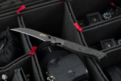 Самая дорогая модель семейства, стоимостью 449,99 долларов, Caledonian Edge имеет клинок длиной 108 мм и толщиной 3,8 мм, идеально симметричное от начала до конца. Быстрозатачивающийся полый клинок с матовым черным PVD-покрытием оснащен шипом для большого пальца. Как уже было сказано, нож использует механизм запирания liner lock. Больстеры титановые. Рукоять из углеродного волокна относительно тонкая, с удобным для ладони профилем. Вес составляет всего 153 г, что делает Caledonian Edge удобным для хранения и идеальным для повседневного ношения, в том числе благодаря встроенной карманной клипсе.
