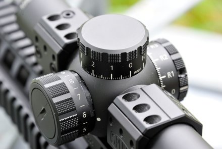 Барабанчики вертикальной и горизонтальной настройки несколько крупноваты (диаметр 42 мм), но в тоже время имеют низкий профиль, так что они не являются помехой в ситуации, когда требуется широкий обзор (взгляд поверх прицела); оба они фиксируются – и в тоже время не фиксируются: лучше всего при использовании прицела запереть оба барабанчика, утопив их вниз в нулевом положении, и, используя сетку MR10+ (которую мы рекомендуем в противовес