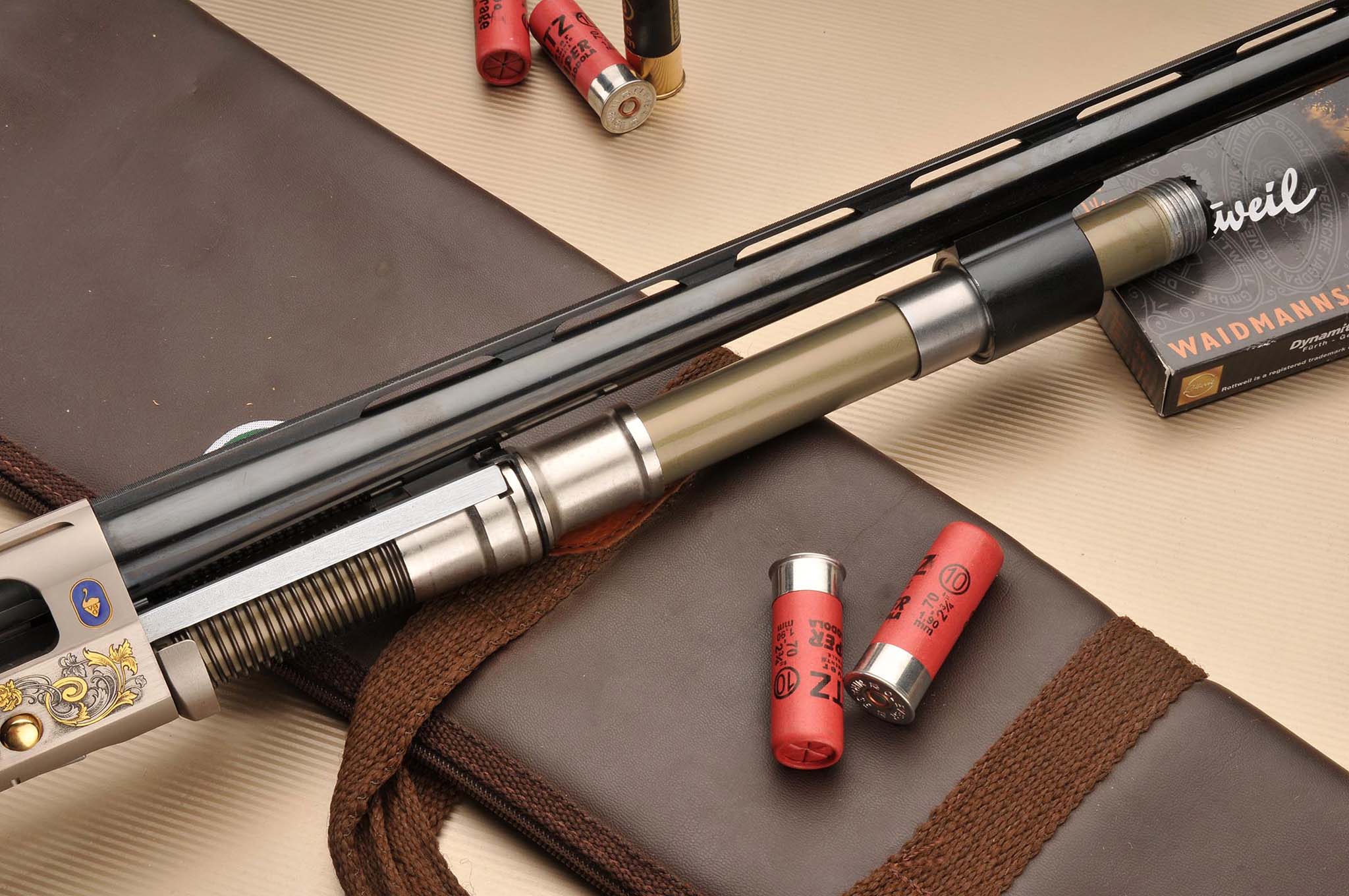 Полностью автоматическое оружие не использует эту систему, потому что одно дело произвести несколько выстрелов сразу и потом, возможно, около пятидесяти, когда речь идет об охоте на рябчиков в Шотландии, но стрельба из пулемета с ленточной системой боепитания это совсем другое, так как он может легко произвести более пятиста выстрелов за день на поле боя.